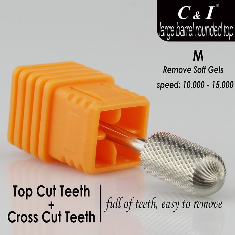 C & I Rounded Top Nail Drill, Large Barrel Edition, E-File Head for Nail File Machines, Design for Quick Remove Gel Nails (Middle -M)