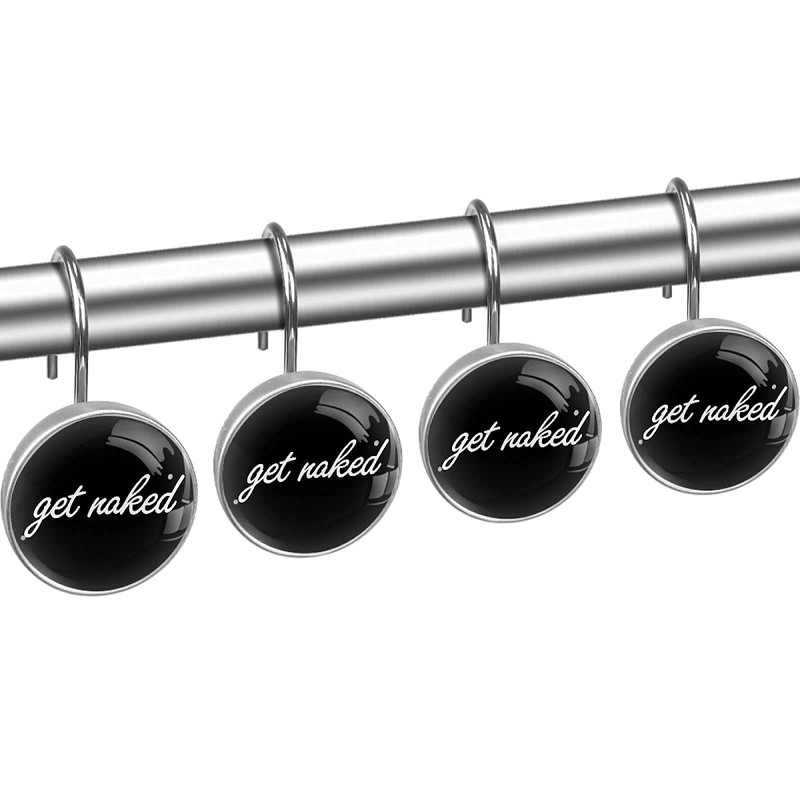 C.IOPMNU 12pcs Funny Shower Curtain Hooks, Black Shower Curtain Rings Roller, Stainless Steel Round Shower Rings Hangers for Bathroom Curtains Rods
