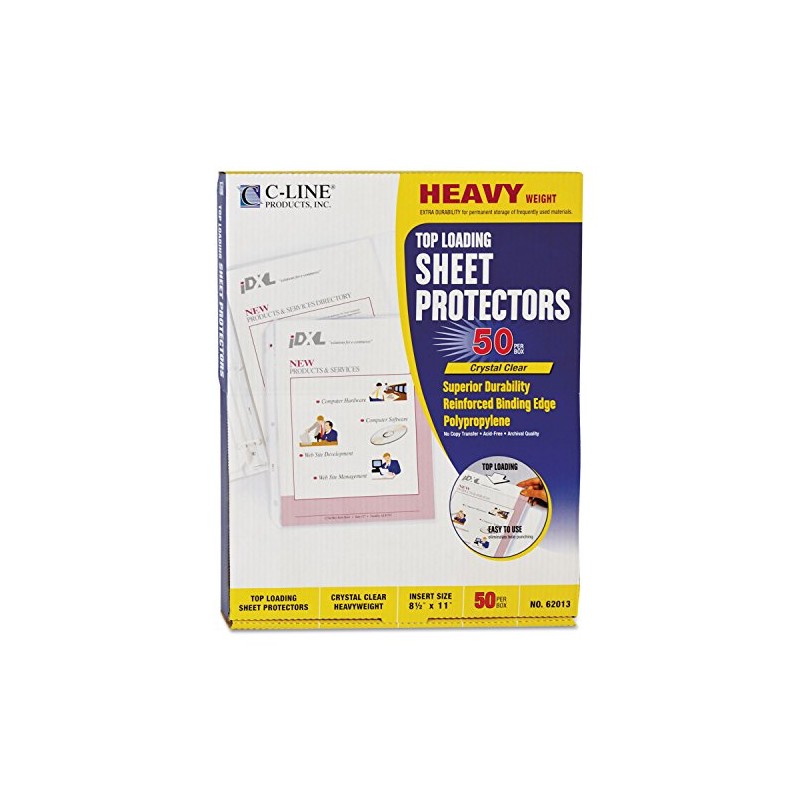 C-Line 62013 Heavyweight Polypropylene Sheet Protector, Clear, 2-Inch, 11 x 8 1/2, 50/BX