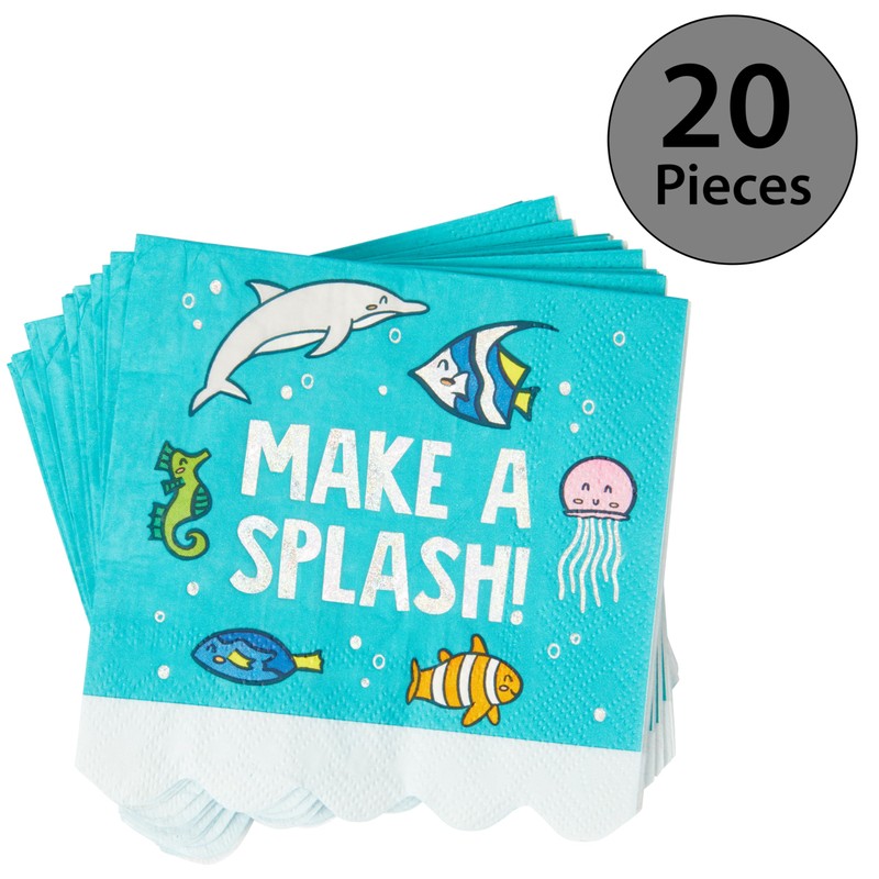 C.R. Gibson TW4-25638 Under The Sea Disposable Paper Cocktail Napkins, 5" x 5", Multicolor, 20 Pieces