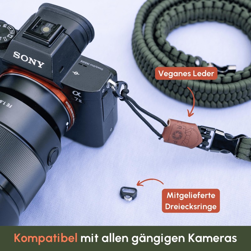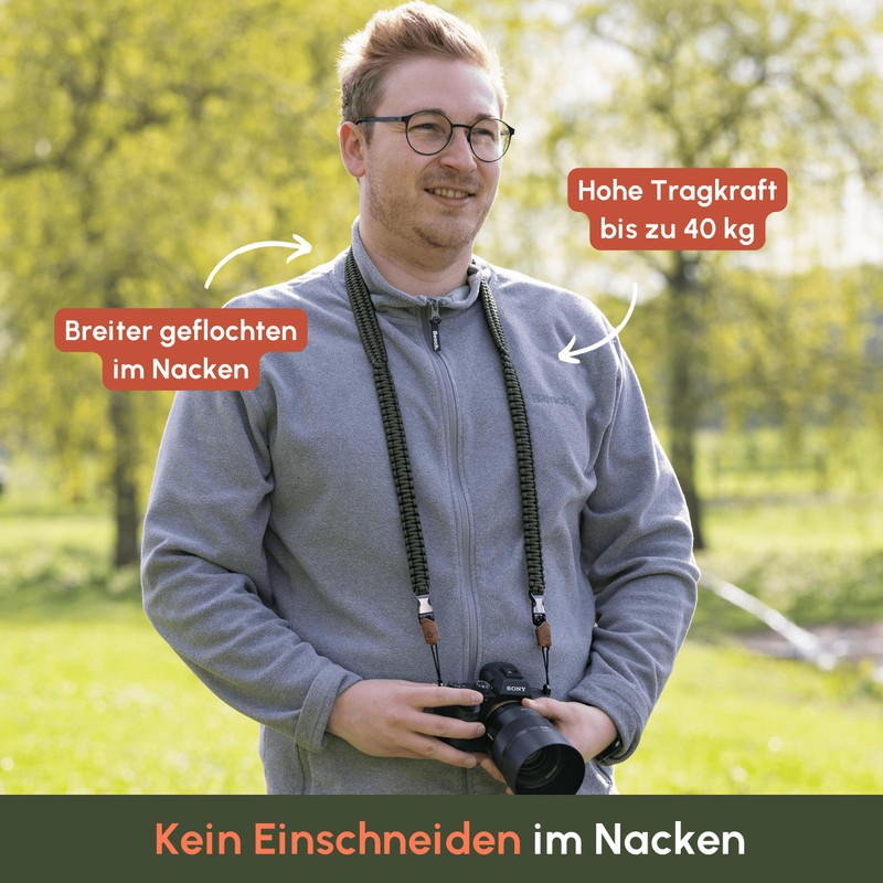 - Extremely stable: Paracord secures life when mountaineering, with us it secures your camera. Due to the fact that the piece is braided wider at the neck, the camera strap is also ideal for long outdoor trips.