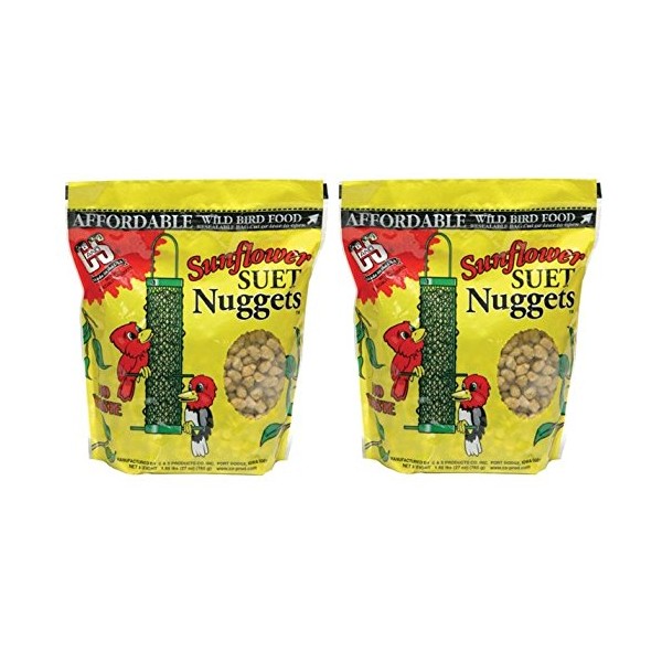 Draw more feathered friends to your yard with C&S Sunflower Suet Nuggets Wild Bird Food. It contains a blend of suet with additional high oil content ingredients formed into soft nuggets that are easy for beaks to break apart. This food can be fed alone or mixed with other seed in traditional feeders. Ideal for year-round feeding, C&S Sunflower Suet Nuggets Wild Bird Food appeals to suet, fruit and insect-eating birds.