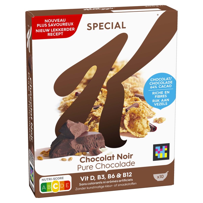 - For a real moment of Völlerei, enjoy special Kchocolat Black with it's Crispy flower petals of rice, wheat and wheat complete mixed, delicious chocolate or black. The more than Special Kchocolat Black: source of protein, source of fibre, source of magnesium. Less DE2 Gram of Fat per serving.Recipe rich in 7 vitamins (B1, B2, PP, B6, B9, B12, C) and iron.A single serving of 30 g is 38% the day dose in 6 B vitamins and vitamin C and...