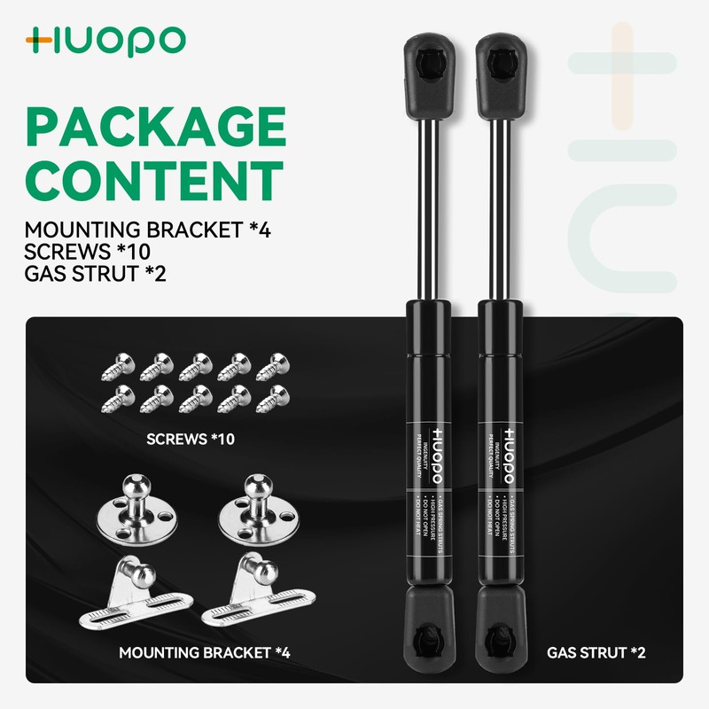 - 【10 In Gas Strut Package Content】Package contains 10 Inch Gas Strut x2, mounting brackets x4, screws x10. Installation with a flat screwdriver, no special tools required.