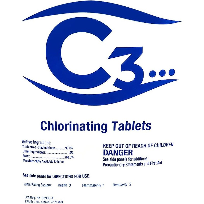 C3... 1" Stabilized Chlorine Tablets for Swimming Pool | Slow Dissolving Chlorinating Tabs for Above Ground or Inground Pools, & Spas/Hot Tubs | 10 lbs