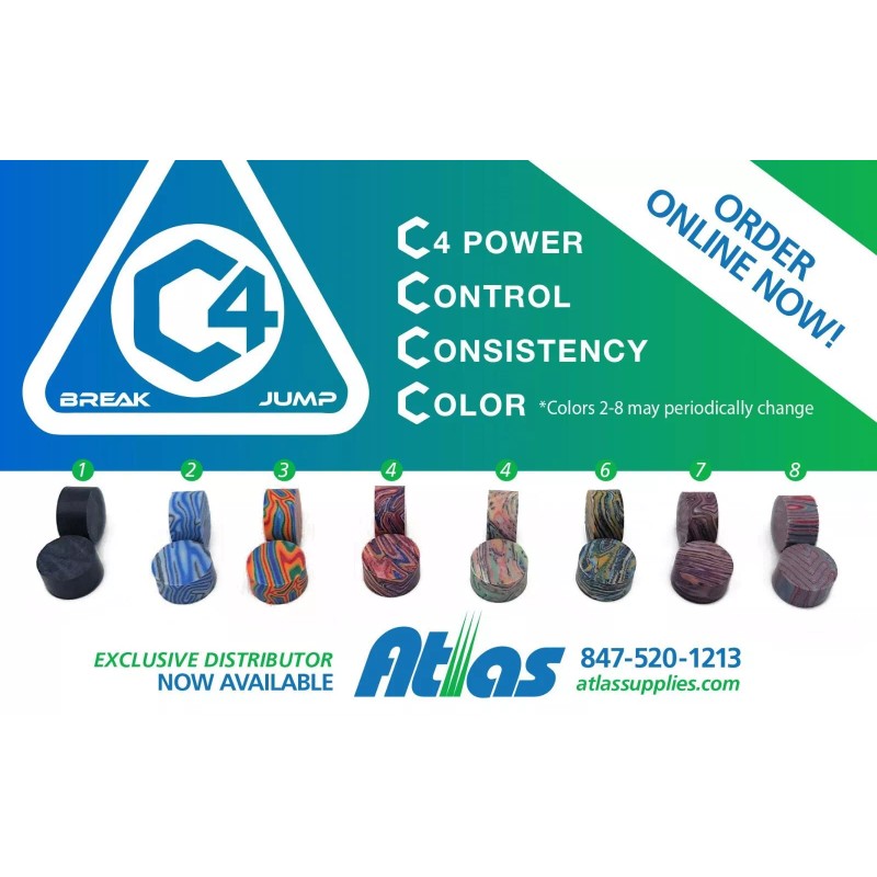 C4 tips were created using a unique fabric and impact resistant resin which allowed it to be made so that the tip provides optimal power, holds chalk for more cue ball control, does not compress so that there is no change in feel throughout the tip, and with the unique fabric, it comes in black and multiple color patterns.