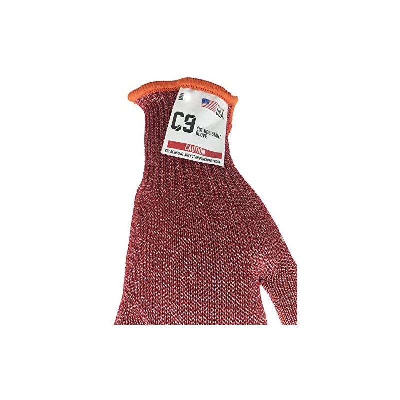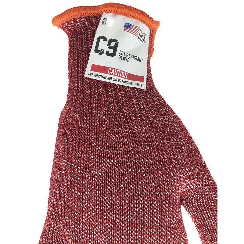 C9 Red Cut Resistant Glove, 10 Gauge, ANSI Cut Level 6, High Performance Synthetic Fiber Blend, Top of the line in cut and abrasion resistance and protection, Sizes S-XL, Sold by Pair