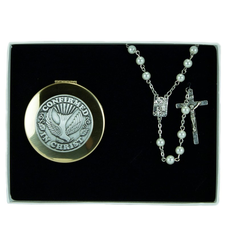 CA Gift CS123 Confirmation Pearl Rosary with Keepsake Box, Gift Set White
