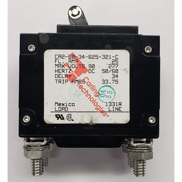 Ca2-B0-34-625-321-C 25 Amp Carling Circuit Breaker, Black Handle