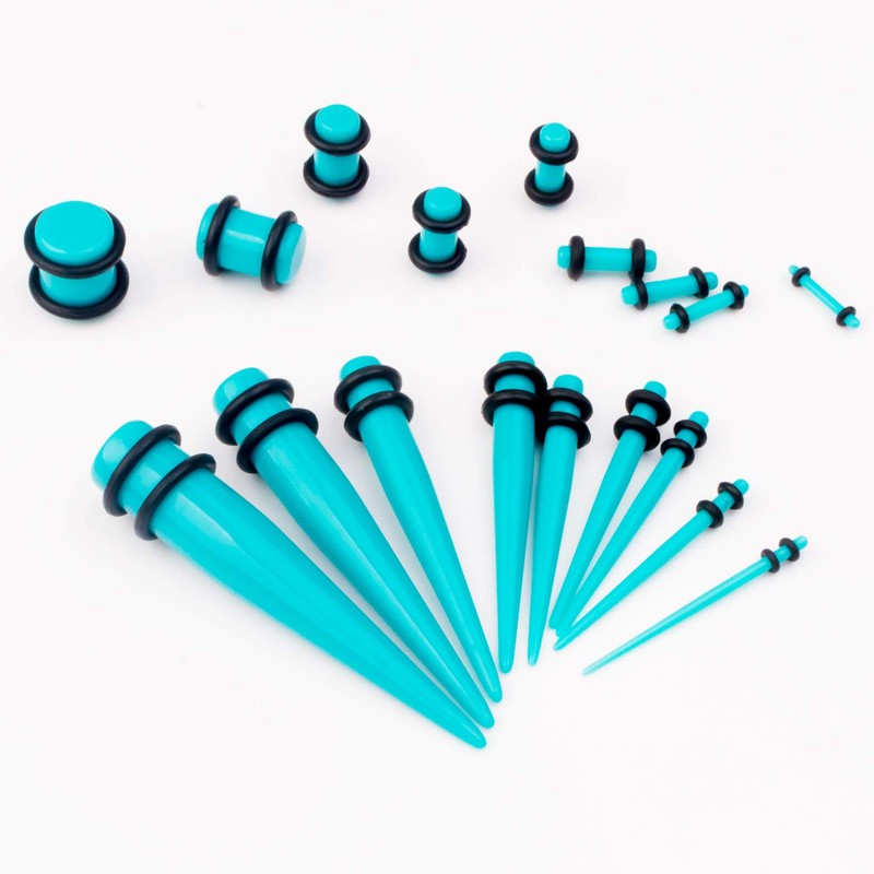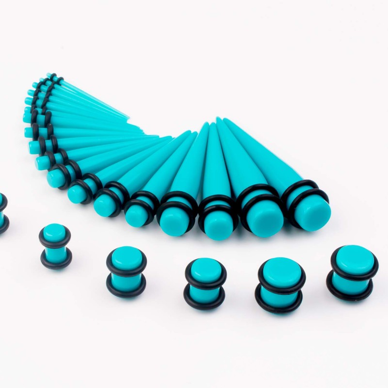 CABBE KALLO 50-Piece Ear Stretching Kit with Acrylic Tapers, Plugs, and Silicone Tunnels - Body Piercing Jewelry for Ear Gauges - Stretching and Gauging Set for Tapers, Plugs, and Gauges,Turquoise