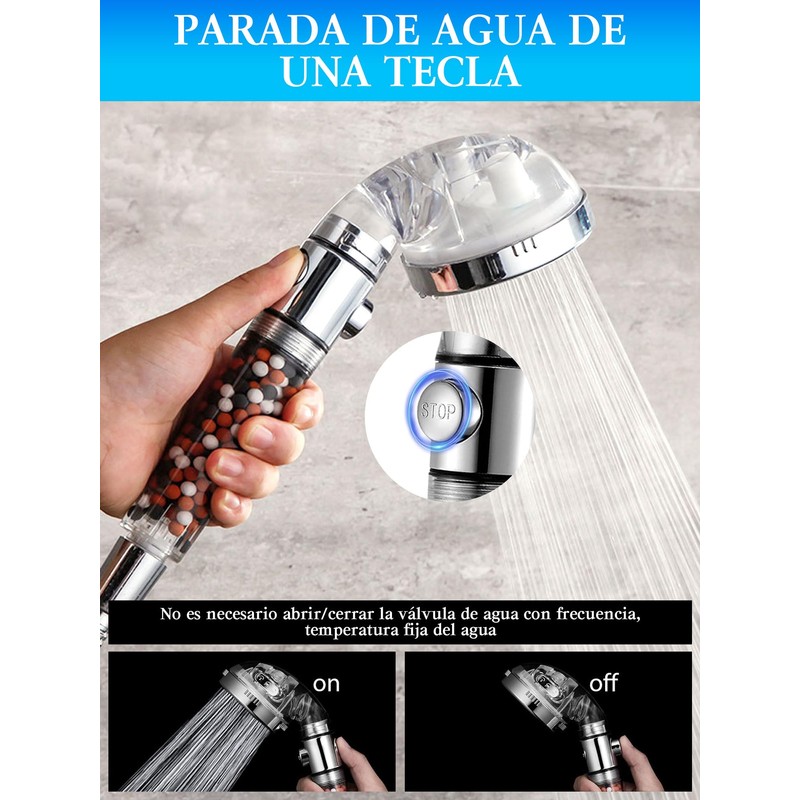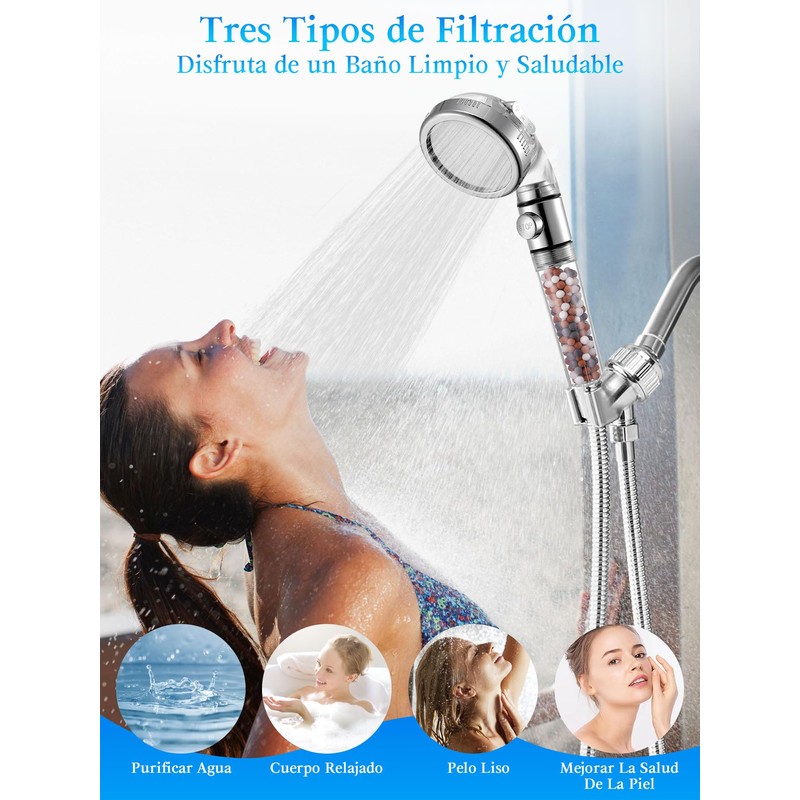 - ★ SISTEMA DE FILTRO TRIPLE - El cabezal de ducha con filtro está equipado con un sistema de filtro de alta densidad (3 tipos de cuentas minerales naturales puras incorporadas), que pueden eliminar las impurezas de manera efectiva y hacer que el agua sea más limpia. El agua suavizada y purificada deja tu piel más suave, tu cabello más liso y tu cuerpo en equilibrio.