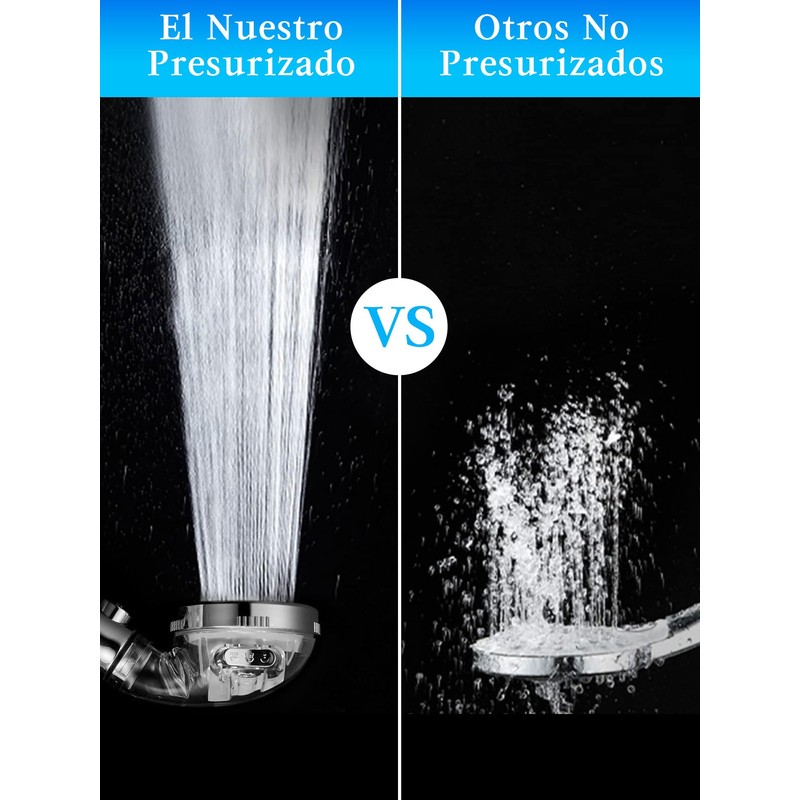 - ★ AHORRO DE AGUA A ALTA PRESIÓN - La ducha de alta presión está diseñada con orificios ultradensos y la presión del agua aumenta en un 200 %, lo que representa un 30 % menos de agua que las duchas normales. Produce un baño potente y completo que envuelve todo el cuerpo. Ideal para sistemas de plomería bajos y vehículos recreativos.