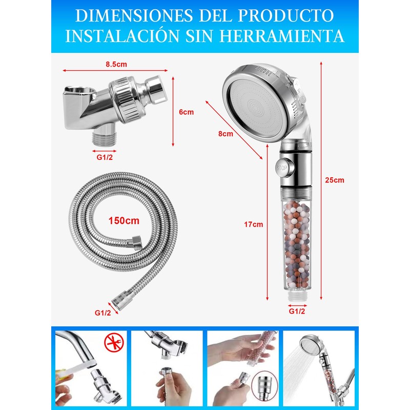 - ★DISEÑO RESISTENTE Y SIN HERRAMIENTAS - ¡Construcción resistente, sin fugas! Filtro transparente de alta densidad y diseño de ángulo, fácil de desmontar y limpiar. El tamaño general G1/2'' se adapta a cualquier brazo de ducha de tamaño estándar. Puede instalar el cabezal de la ducha tan fácil y sin esfuerzo como atornillar la bombilla usted mismo, ¡sin necesidad de herramientas ni de plomero!
