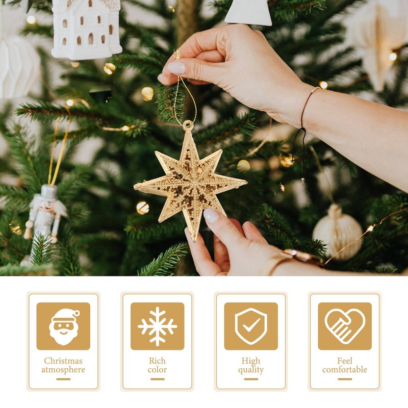 - Packaging and Size: Includes 6 cute gold star Christmas tree decorations, size: 8.60 x 8.20 x 3.00 cm/3.38 x 3.22 x 1.18 in, good for the upcoming festival, party or wedding occasions