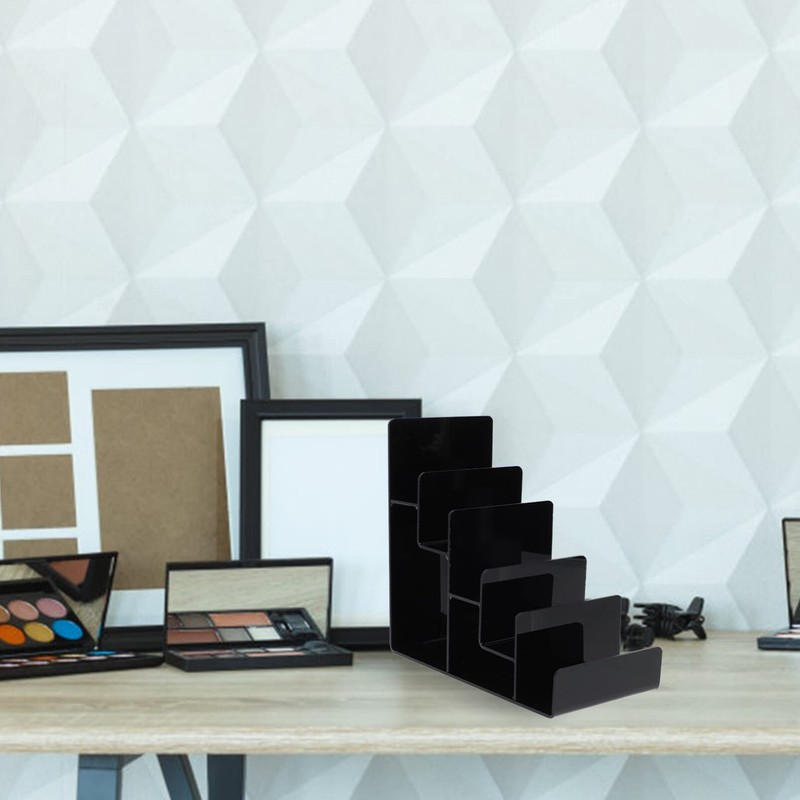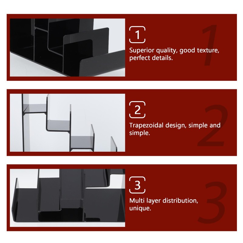 Cabilock Jewelry Holder 5 Tier Acrylic Display Stand:Clear Riser Display Shelf for Figures Step Acrylic Wallet Purse Glasses Display Organizer Holder Black Purse