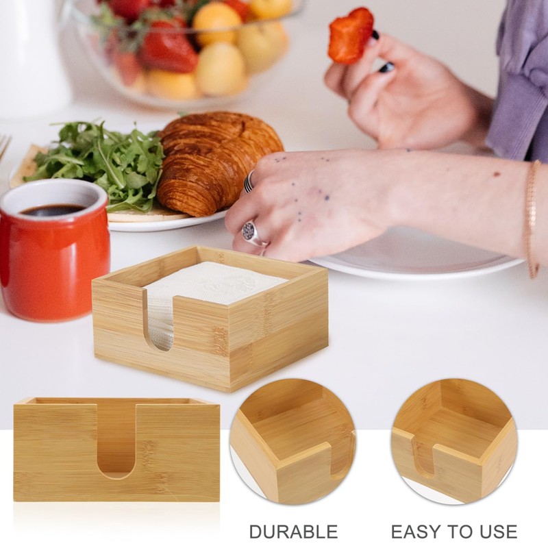 - Organized Napkin Storage: This wood napkin holder keeps your napkins neat and tidy, enhancing the elegance of your dining area with its stylish design