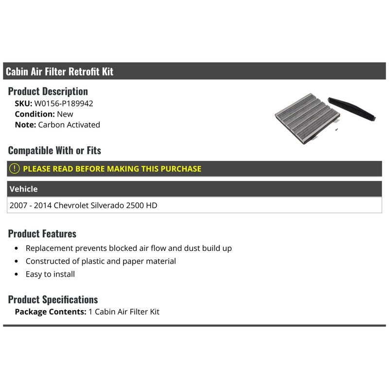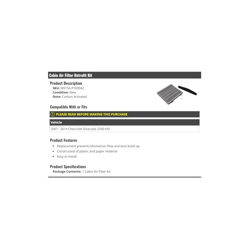 Cabin Air Filter Retrofit Kit - Carbon Activated - Compatible with 2007-2014 Chevy Silverado 2500 HD