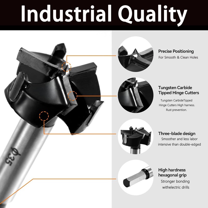 - 【Pro-Grade Kit Built to Last】 Crafted from hard-anodized aluminum. Complete kit: Carbide 35mm Forstner bit, depth stops, hex keys, pins. Ultimate precision for pros & hassle-free DIY.
