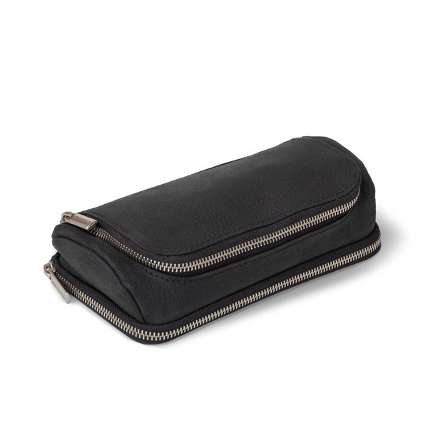 - Features: 100% genuine, solid, robust, oiled buffalo leather, transparent dyed ・lining made of lining leather・ two separate compartments ・ organiser unit with rubber loops and mesh slip pocket ・all-round zip ・ 220 x 120 x 50 mm ・260 g ・ storage space: top 0.5 L, bottom 0.2 L ・ colours: Black blue blackblackblackblackblack- Red, brown, cognac, grey