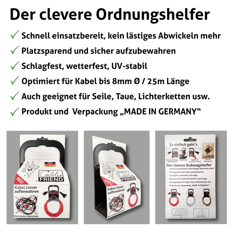 - Also suitable for ropes, flexible hoses, fairy lights etc. / Product and packaging "Made in Germany"