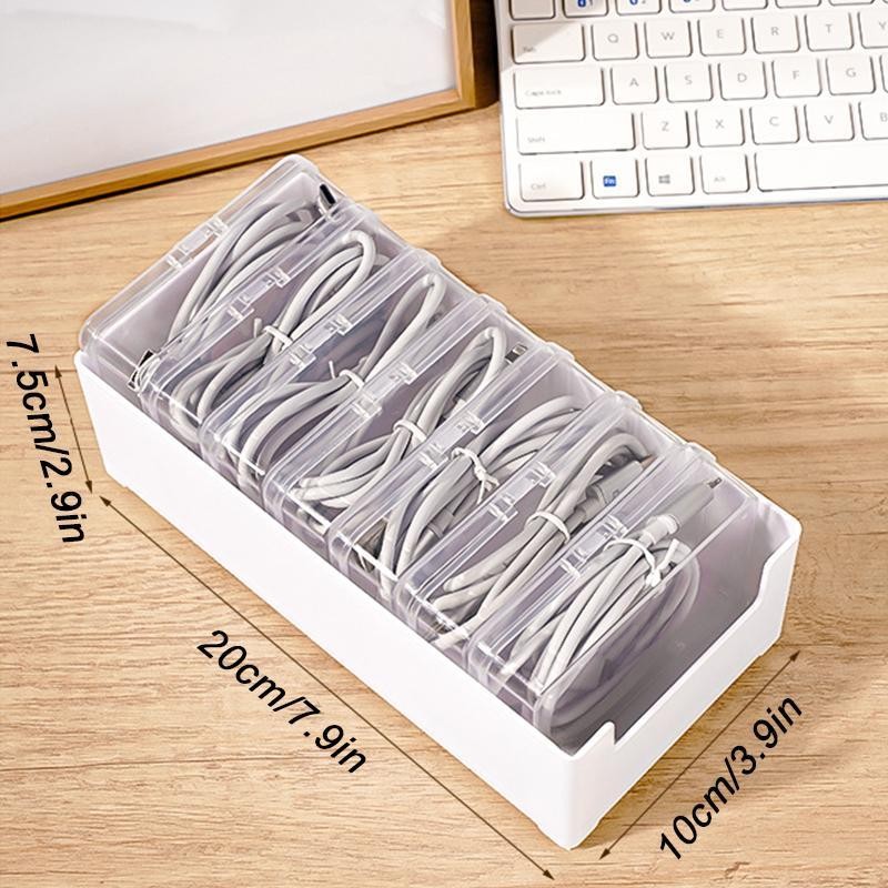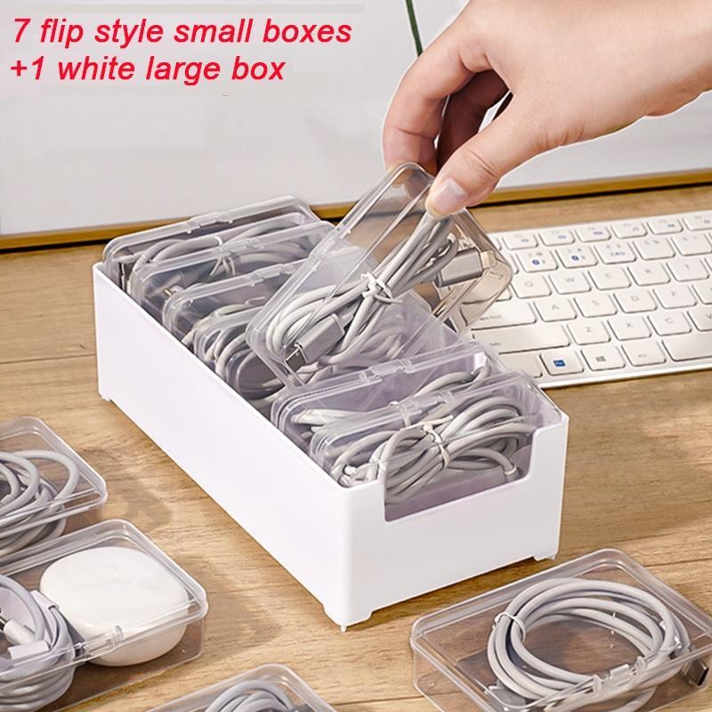 Cable Management Box, 1 Set Cable Organizer Including 7 Counts Flip Style Small Boxes & 1 Count Large Box, Desktop Charging Cable Storage Box for Office Home