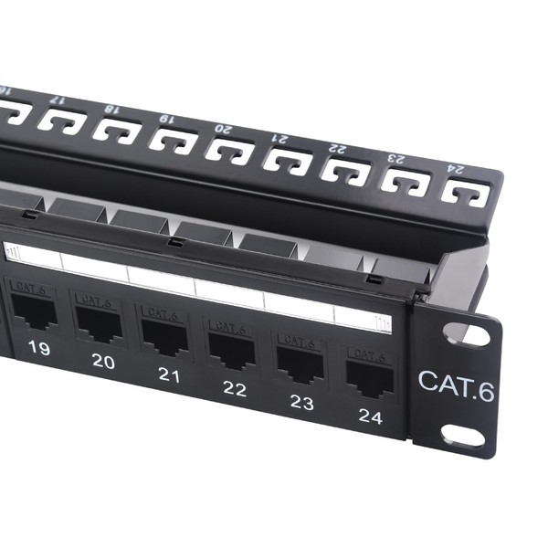 - High-Speed Network Performance: Elevate your network with this 1U 24-port Cat6 patch panel, designed for rapid data transfer rates up to 10Gbps, perfect for high-demand environments like data centers and enterprise networks.