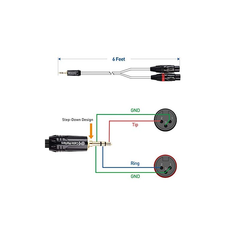- Robust construction includes a flexible PVC jacket with gold-plated connectors in an easy-grip housing; Step-down design of 3.5mm plug on XLR cable allows for connection to the recessed portsof a smartphone or tablet; Easily split the dual XLR to 1/8 cable with individual cable jackets to fit close or widely separated XLR ports