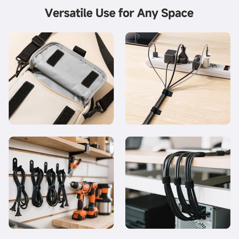 - Reusable & Easy to Use: Designed for everyday use, these adjustable hook and loop straps are simple to loop, cinch, and fasten. The reusable cable straps with buckle allow quick application, removal, and reuse without damage—perfect for home, office, garage, or travel.