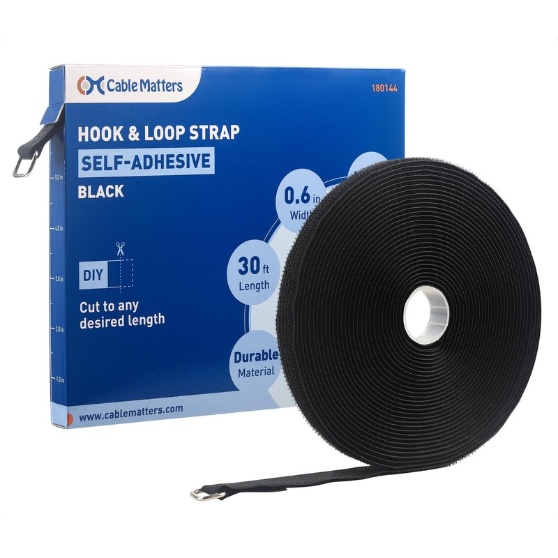 Cable Matters Hook and Loop Straps with Buckle, 30ft Roll with 45 Metal Buckles, 0.6 Inch Wide Adjustable Cable Straps, Black