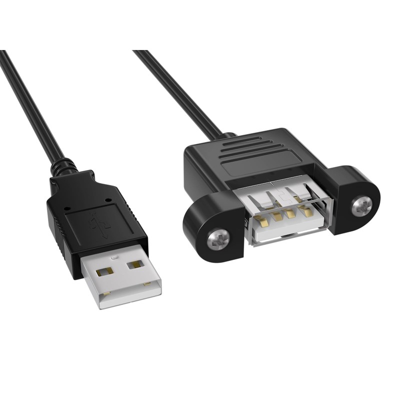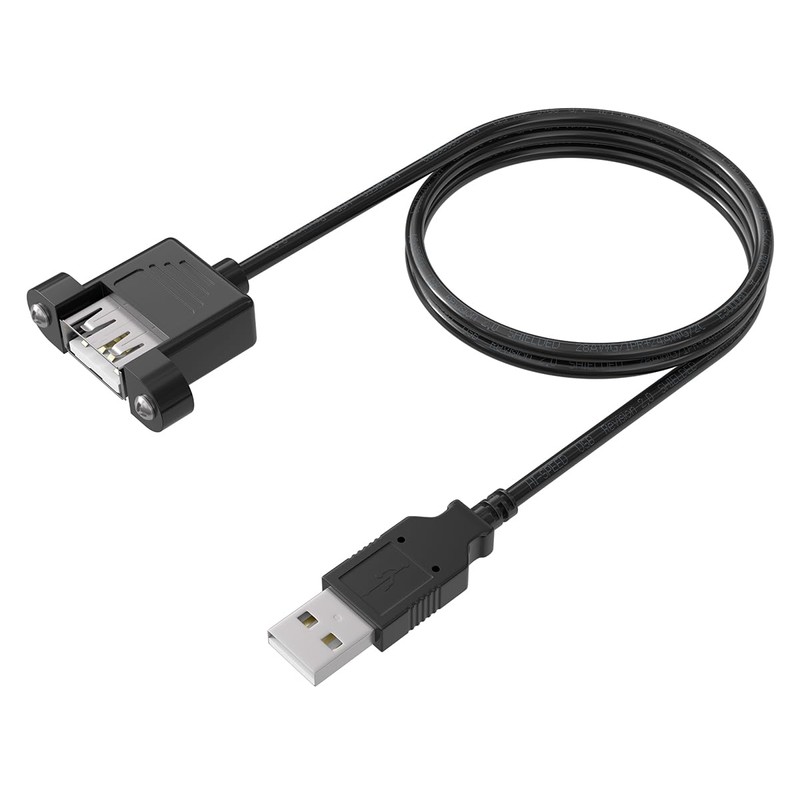 CableLeader 8ft USB 2.0 High-Speed Type A Male to Female Extension Cable with Panel-Mount and Screws, Compatible with Keyboard, Mouse, Flash Drive, Black