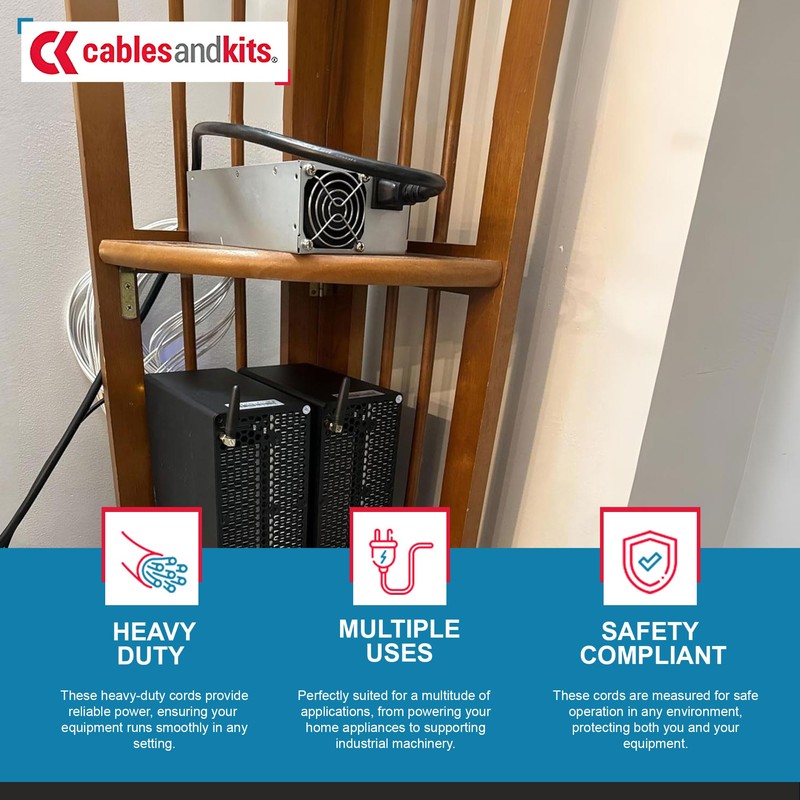 - SECURE POWER CONNECTION: Our AC power cords are commonly used to connect a piece of equipment to a power distribution unit & many other uses. Whether the 15 amp extension cord is used in a basic or dense installation, these heavy-duty power cords save time & money. They provide reliable power delivery, ensuring devices operate efficiently & safely in various environments.