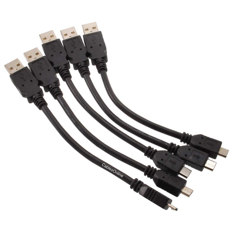 CablesOnline 5-Pack 6 inch USB 2.0 A-Type Male to Micro-B Male Charge & Sync Cable, USB-1500-5