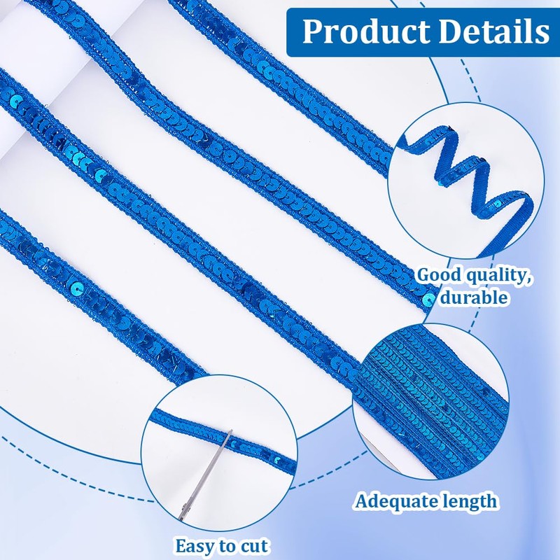 - Material: Blue sequin trim is made of plastic and polyester, which is not easy to fade, and the sequins are not easy to fall off, so it can be used for a long time