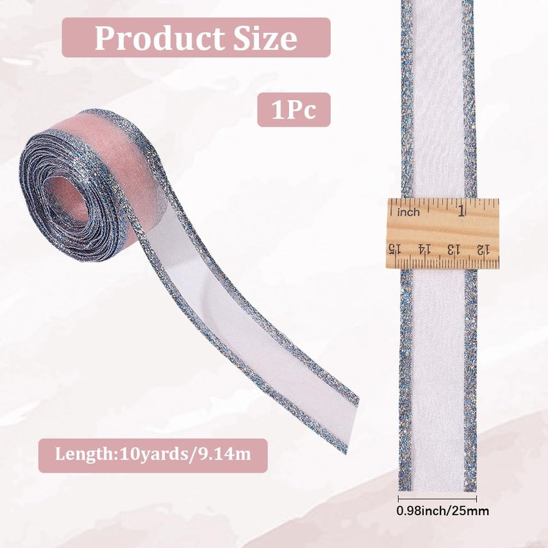 - Rose Organza Ribbon: Rose organza ribbon with silver glitter edge, light refraction dreamy gloss, comes with a sense of hazy magnificence, visual layers of rich