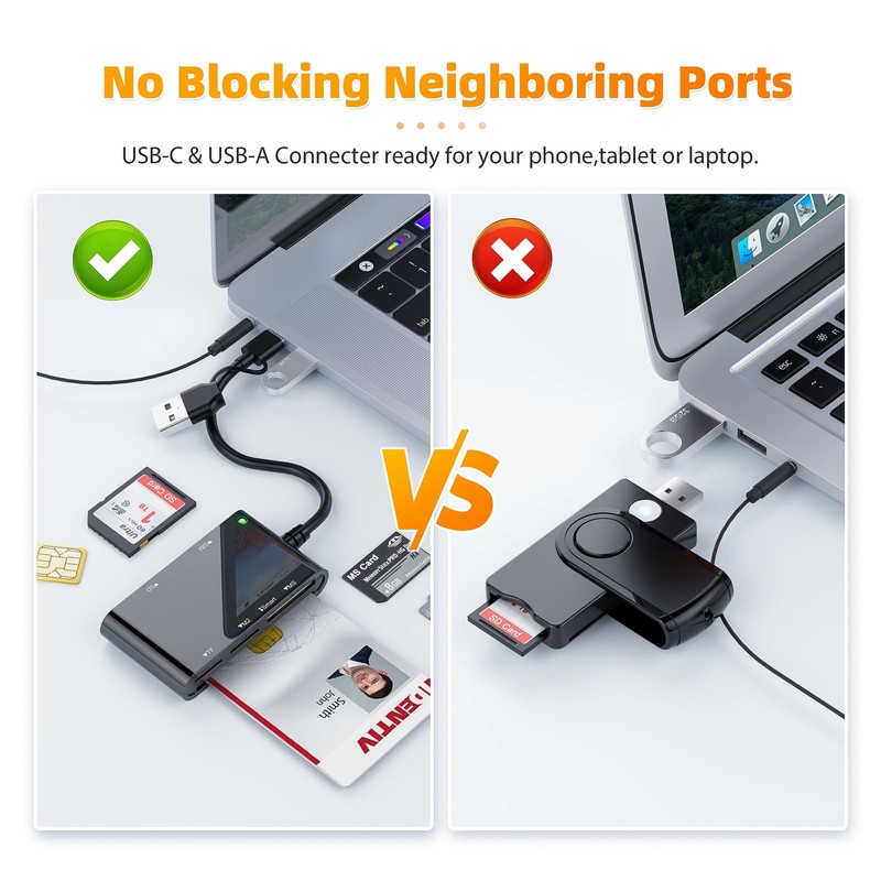 • 【USB CAC Card Reader】With portable design, making the credit card reader only the size size, this DOD Military Common Access Card Reader can be easily hanged on your bag, more convenient to carry. Buy our CAC card reader, get 18-month Manufacturer's Warranty, Hassle Free Replacement and Free lifetime technical support.