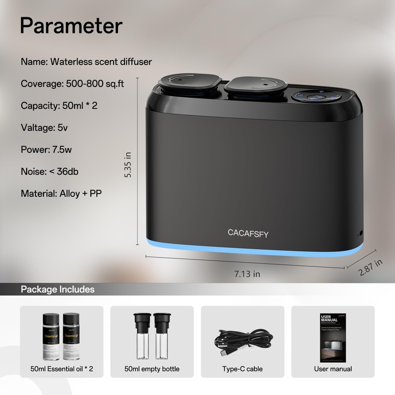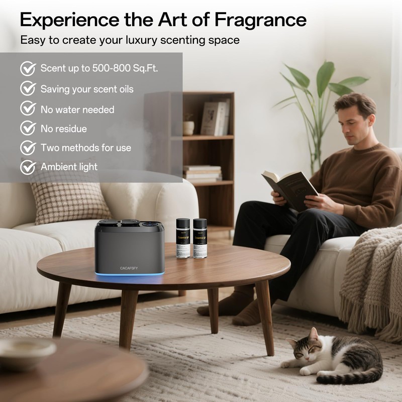 - COLD-AIR ATOMIZATION TECHNOLOGY - High-pressure air to fully atomize the essential oil into tiny nano-particle mist for efficient diffusion.No heating or adding water to add fragrance to your environment within minutes, bringing high-quality aroma to the entire room of 500-800Sq.Ft.evenly.