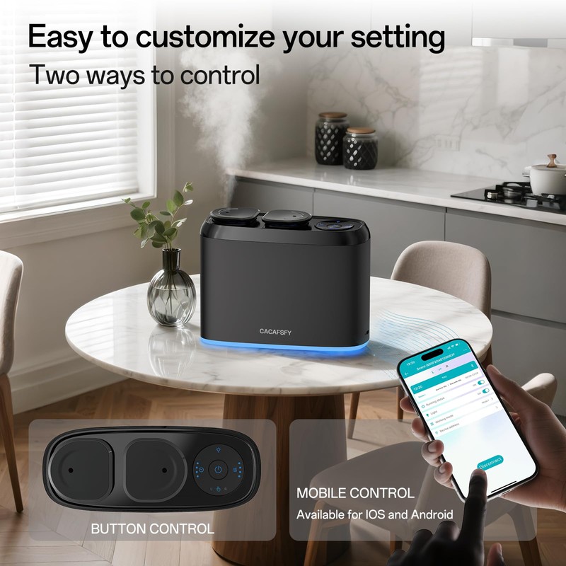 - CUSTOMIZABLE SCENTS VIA APP CONTROL - Easy to use your aroma diffuser in the palm of your hand.Button and App are available. With intutive button controls to adjust mist interval,2/4/8/12-hour timer and spray nozzle switch etc.More customizable multiple advanced schedules setting via ScentTech APP to achieve,including operating dates, specific times, mist intensity, working time and pause time.Available for both iOS and Android.