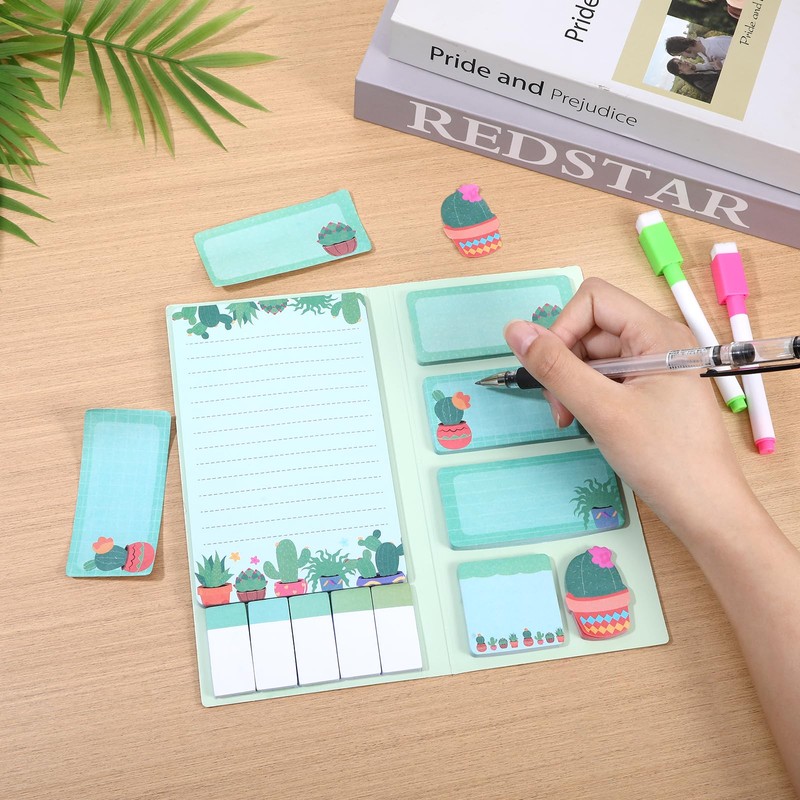 - Cactus Sticky Notes: Featuring lively cactus theme designs, these colorful sticky notes come in fun patterns with bright colors like pink, white, and green. The cute cactus theme writing memo pad adds vibrancy to any workspace or study area