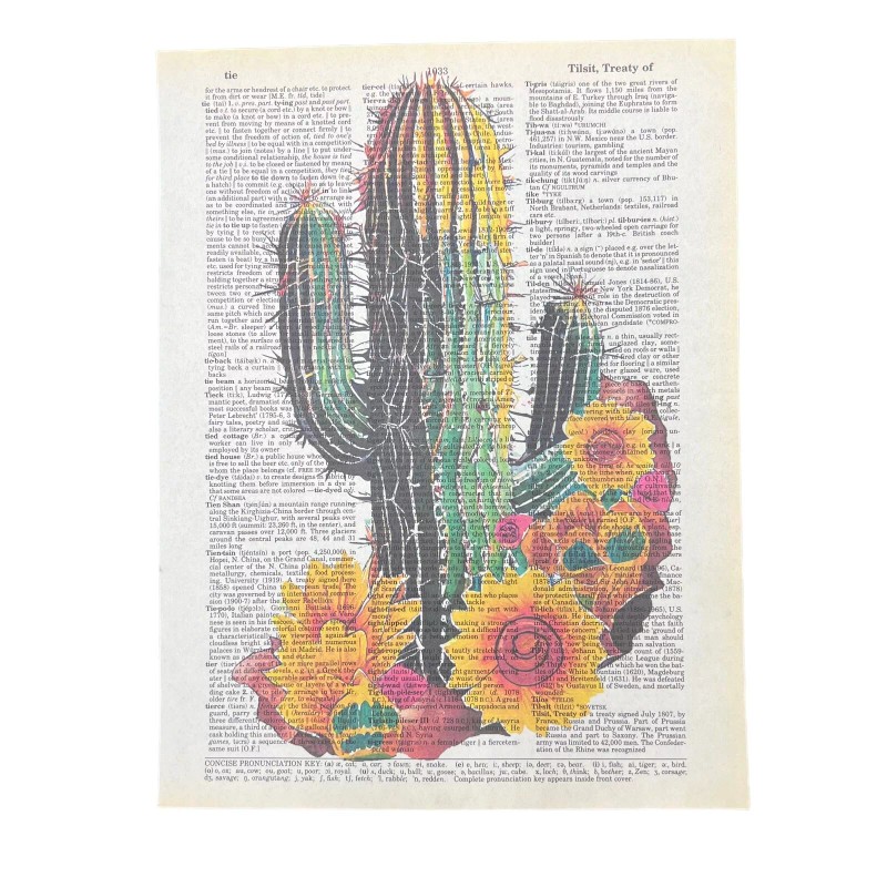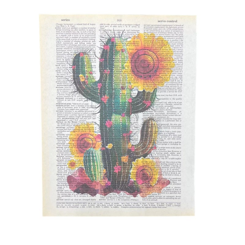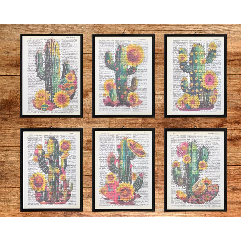 Cactus with Flowers Dictionary Prints Cactus Home Wall Decor Western Floral (6)