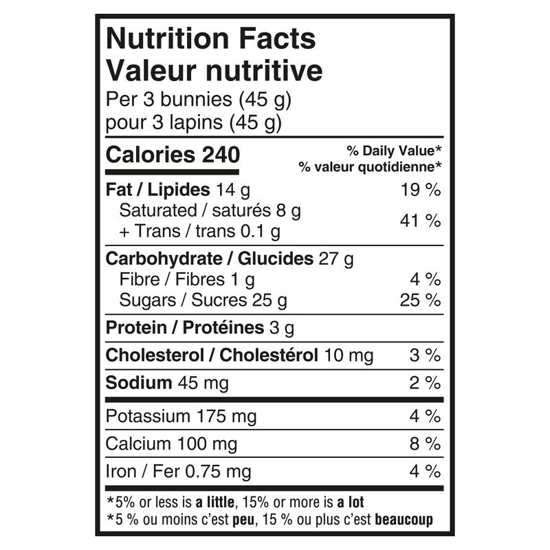 - This 75 g pack contains five individually wrapped hollow Easter rabbit chocolatey candies