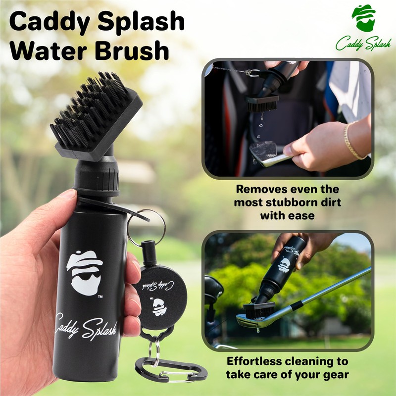 Caddy Splash Golf Club Brush Cleaner with Water - Heavy Duty Retractable Clip- Squeeze Bottle for Easy Cleaning with Nylon Bristles- Holds 4 Oz Water - Golf Accessories- USA Company