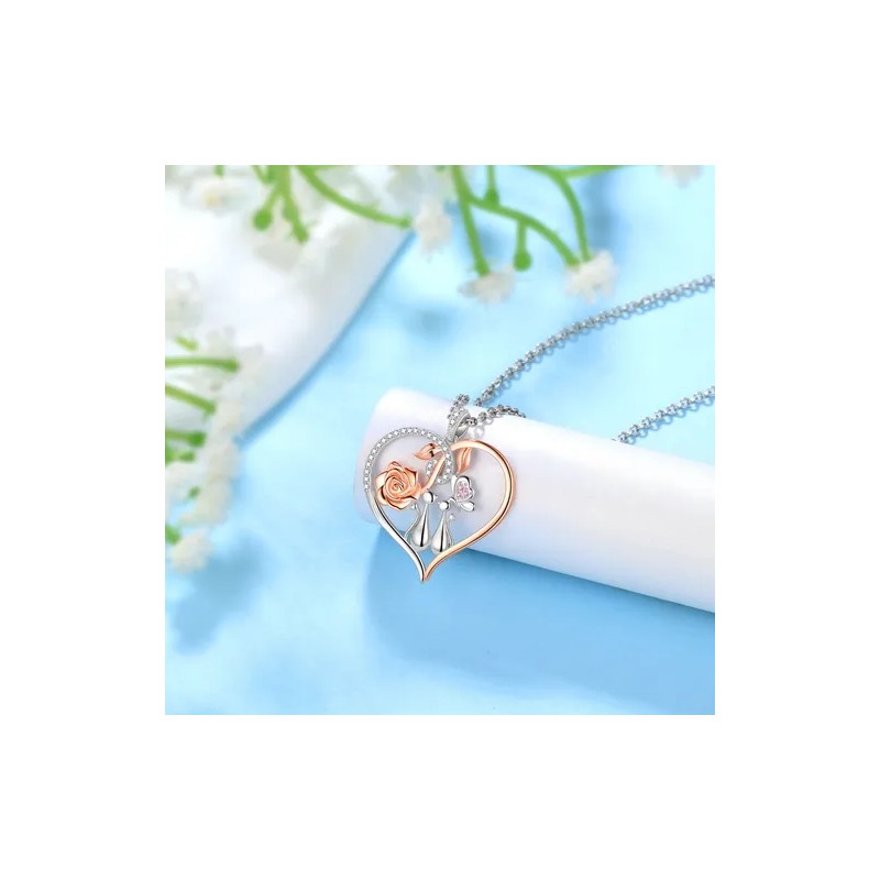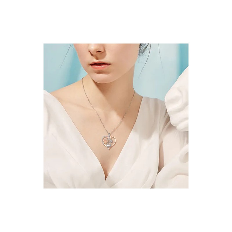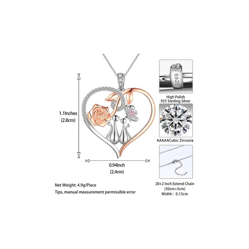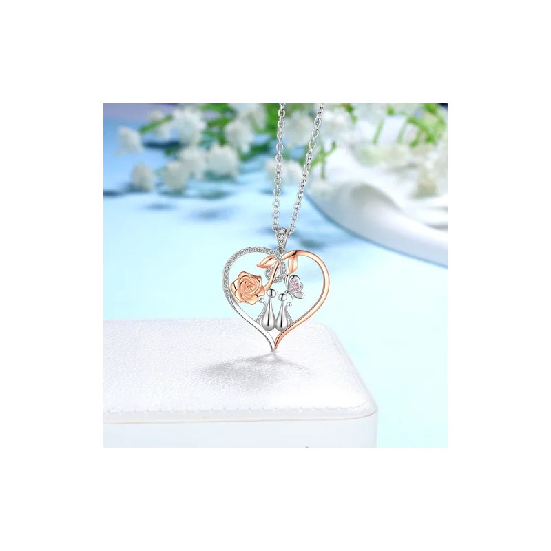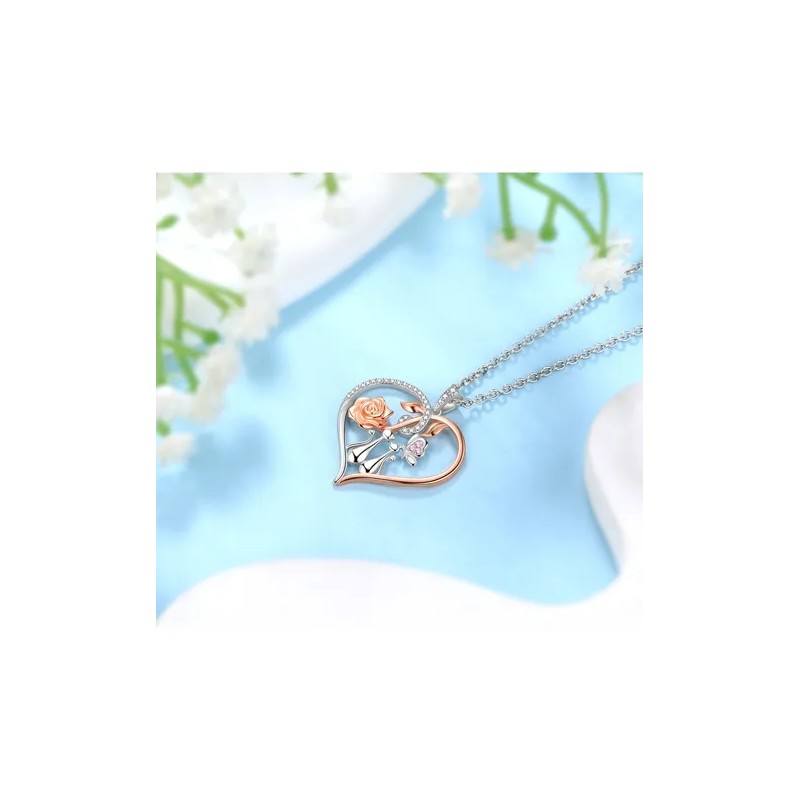 Cadena De Plata Mujer Dije Corazón Oro Rosa Chapado Oro 14k