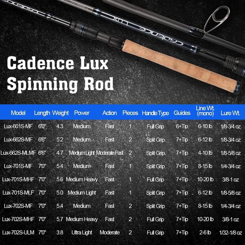 Cadence Lux Spinning Rod (Lux-702S-ULM)