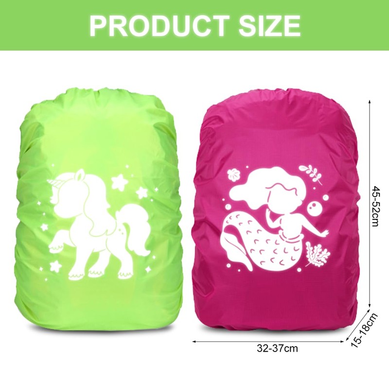 Cadimus Rain Cover Backpack Green Unicorn and Pink Mermaid School Bag Rain Cover Backpack Cover Reflective for Boys and Girls Beginners to School