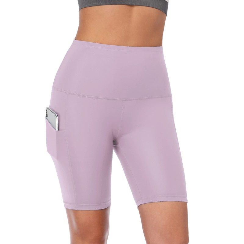 CADMUS Women's High Waist Spandex Yoga Shorts for Bike Running Two Side Pockets,10,Light Pink & Light Purple & Green,XX-Large
