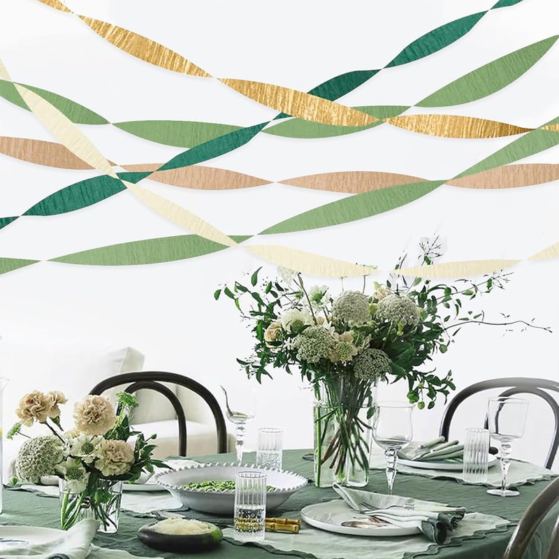 Cadpkler 5 Rolls Sage Green Crepe Paper- Green and Gold Crepe Paper Streamer-Baby Shower, Birthday Party, Wedding Party, Forest Party Decorations