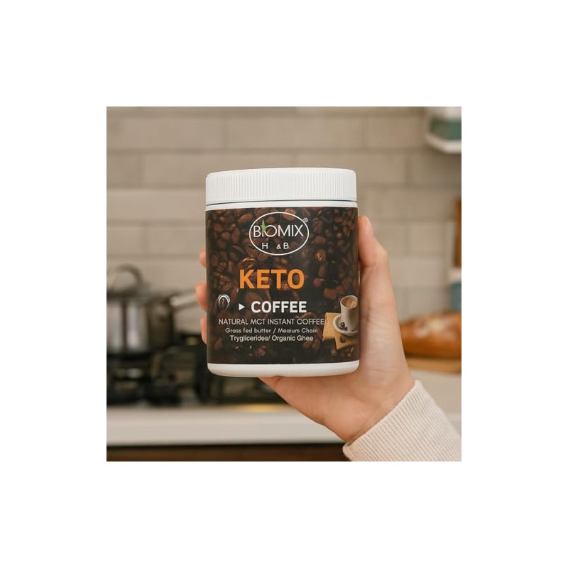 Café Keto Termogénico Instantáneo 300 g Biomix | Sin Gluten, Vegano, con MCT, Ghee Orgánico y Mantequilla Grass-Fed | Ideal para Dieta Cetogénica y Ayuno Intermitente