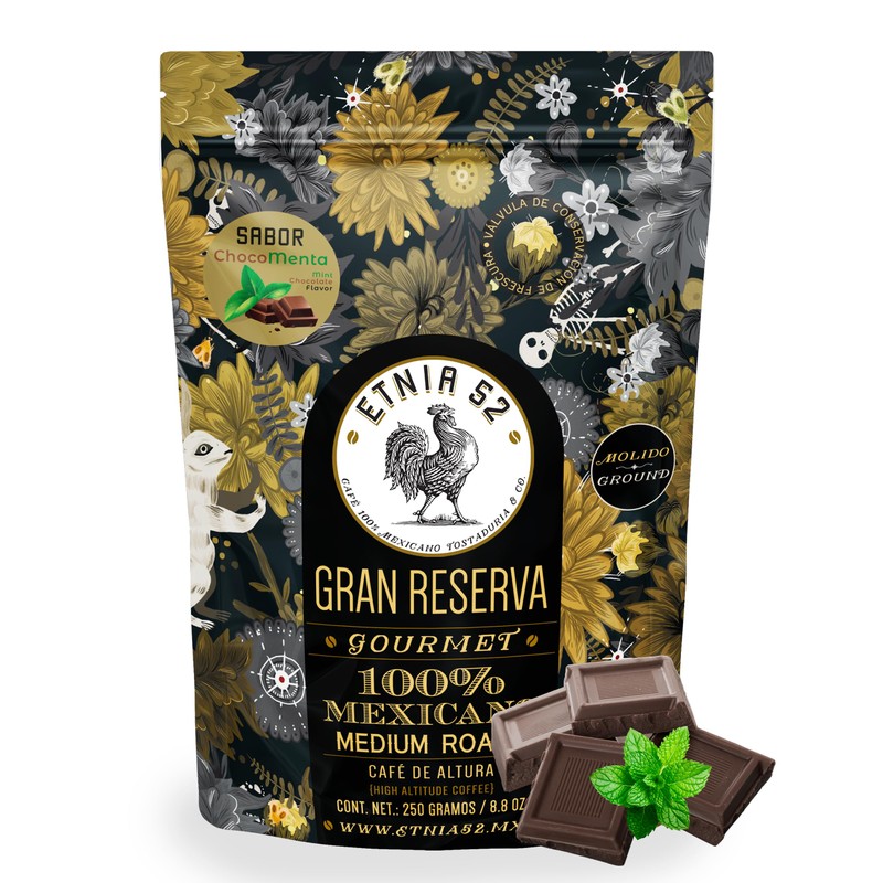 - ETNIA 52 | Todo el sabor, aroma y tradición de México en cada taza. Este café saborizado con ChocoMenta captura lo mejor de la tradición cafetalera mexicana, ofreciendo un toque moderno y refrescante.