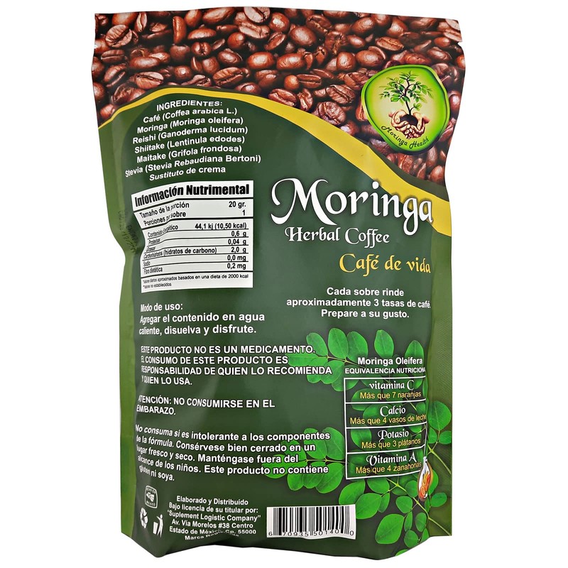- Combina lo mejor de dos mundos: el delicioso sabor del café y los beneficios para la salud de la moringa, una planta considerada un superalimento gracias a sus propiedades nutricionales y medicinales.