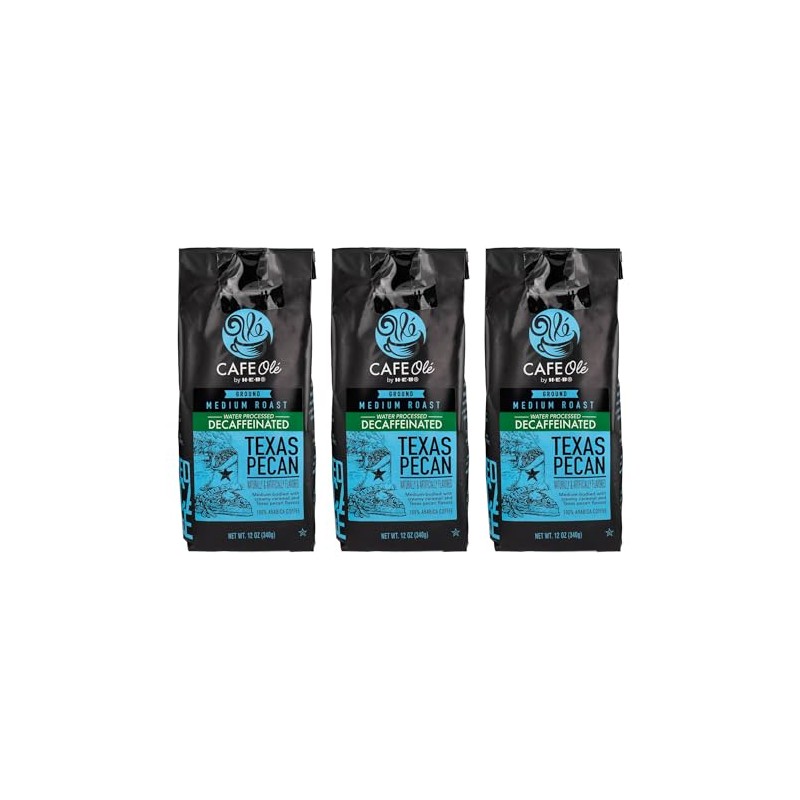 Cafe Ole - Texas Pecan Decaffeinated Coffee - Ground Decaf - 12 oz. (3 Pack)